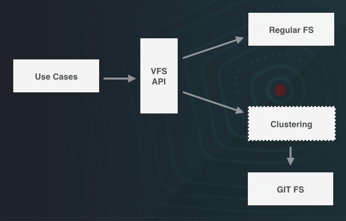 This API is a NIO2 wrapper for I/O operations on the regular file system, or in distributed environments can be switched for a distributed GIT NIO2 backport. In that way, we can move from a simple file store to a distributed git backend without having to change any use case. How? Because we protected our use cases with a Virtual File System interface.
