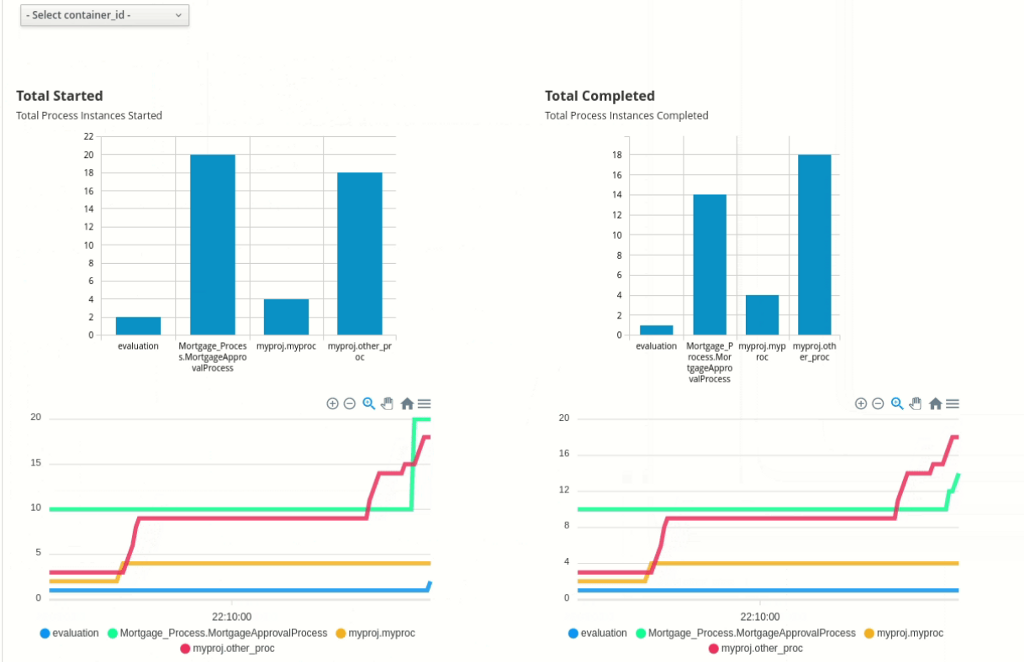 We also recently introduced Dashbuilder support for Kafka data sets. Kafka is the standard event streaming platform for cloud applications and RHPAM/Kogito systems expose metrics using Kafka, so this is the reason why we added Kafka support on Dashbuilder as a data set provider.