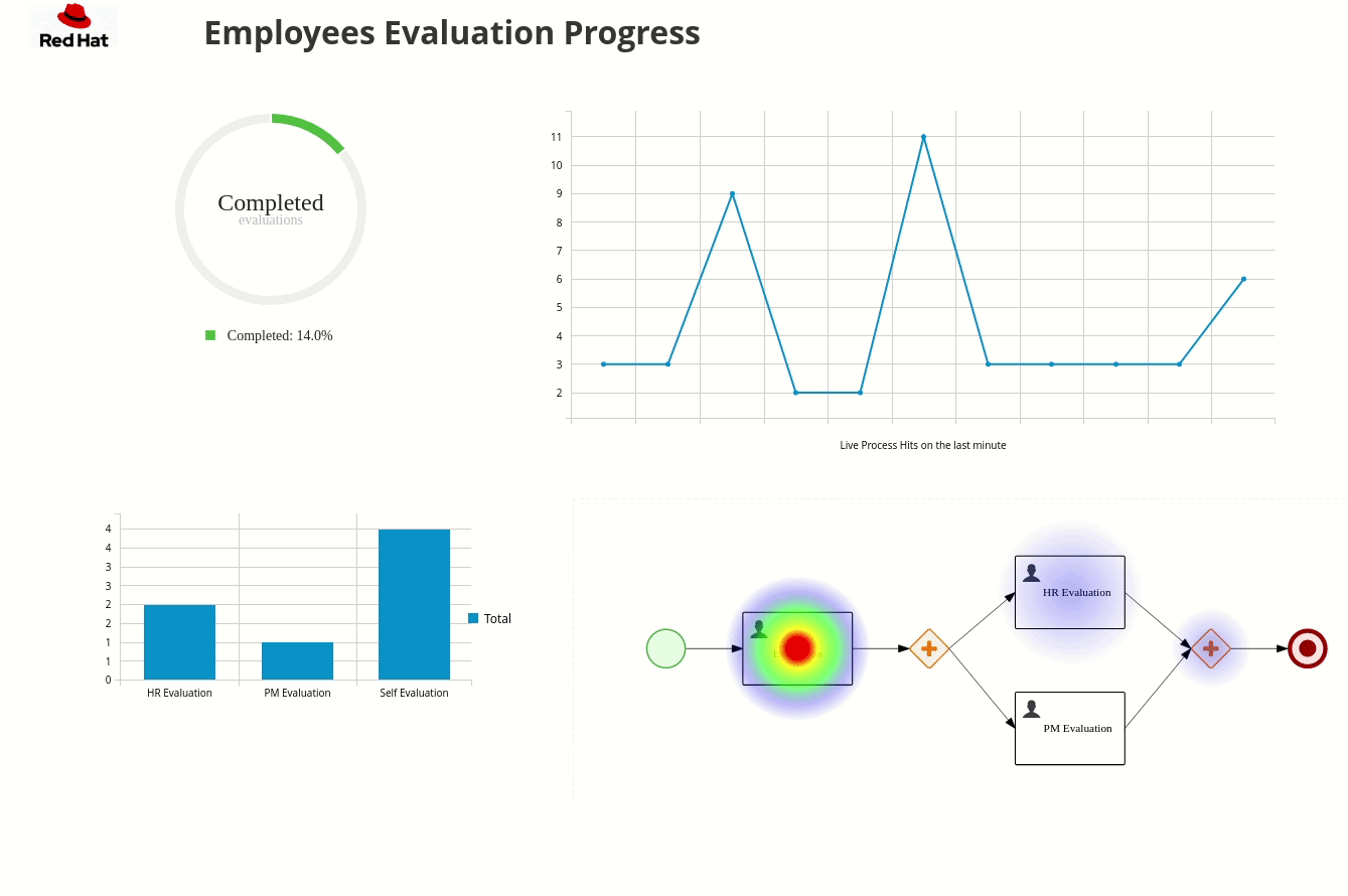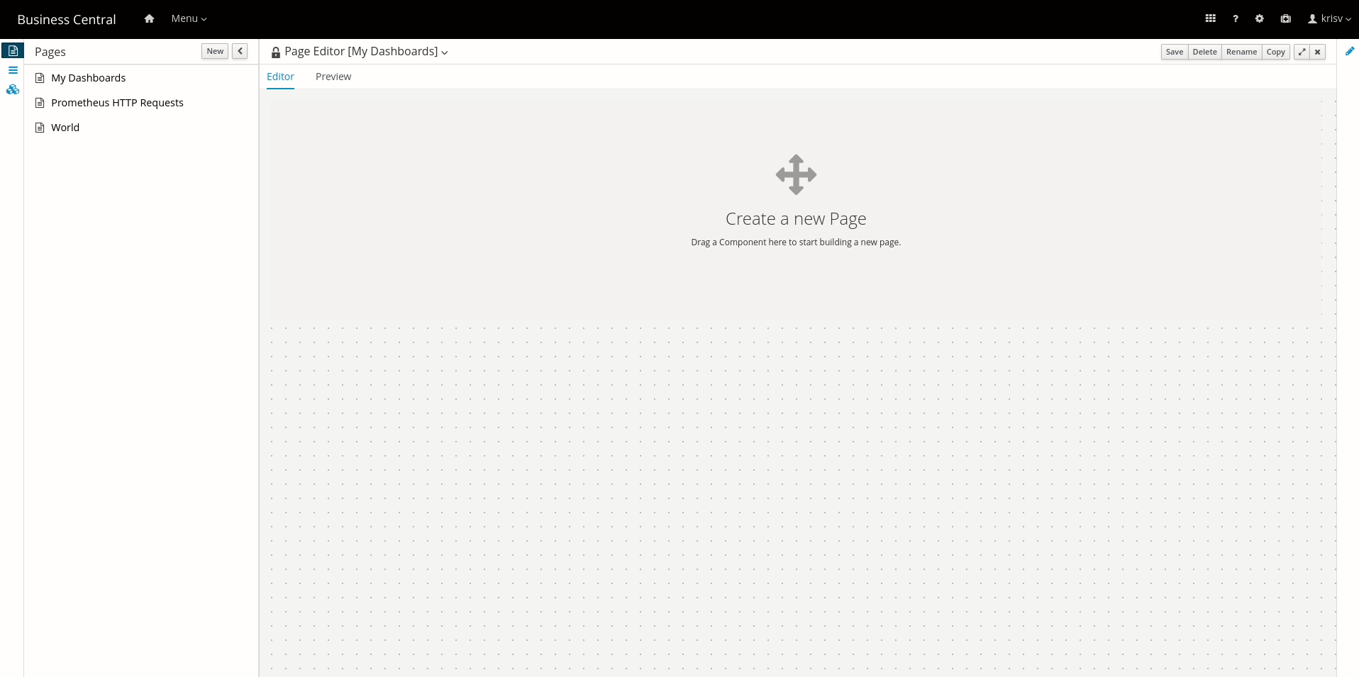 One of the key features of Dashbuilder is that it allows you to compose full-feature business dashboards in a drag and drop way. You can combine a whole mix of components in your Dashboard Page, including reporting components (Bar, Pie, Line, etc.), HTML components, custom extensions, and even other Dashboard Pages (full recursive!).