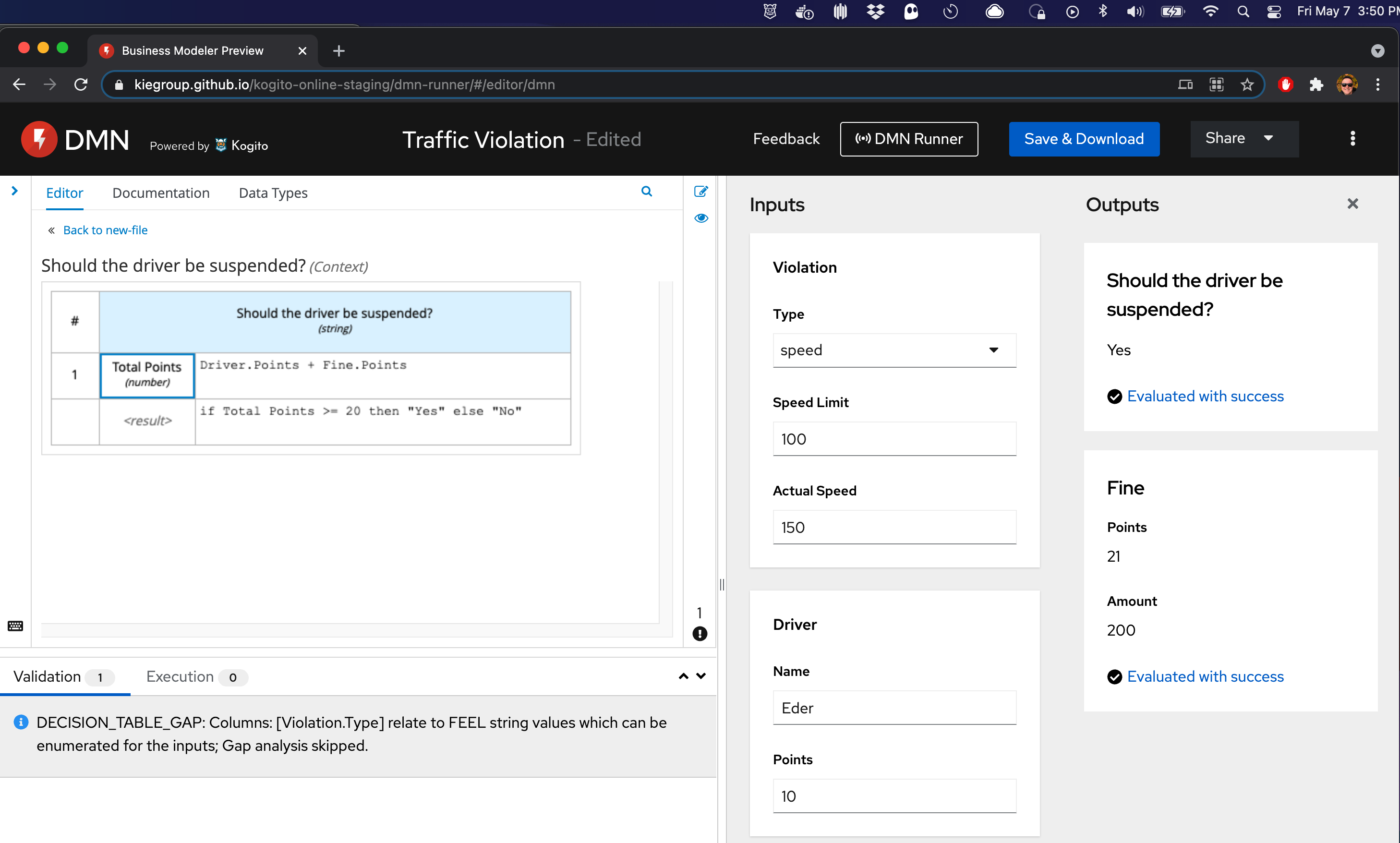 - KieLive#31 Augmenting the developer experience with DMN Runner, by Eder;